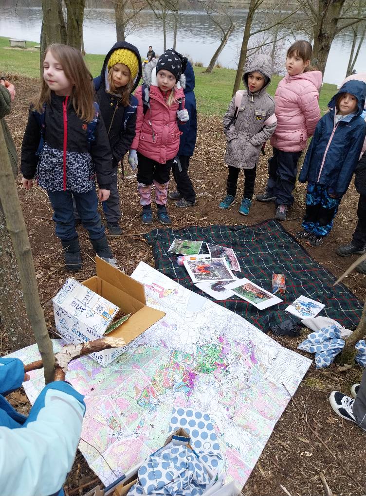 Zimní procházka dětí ze ZŠ Ústí nad Labem spojená se zakládáním do krmelců a završená opékáním buřtů