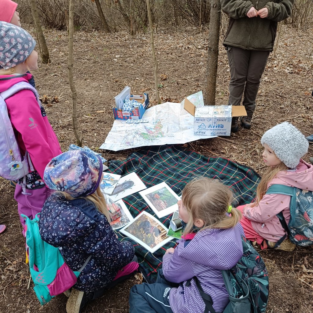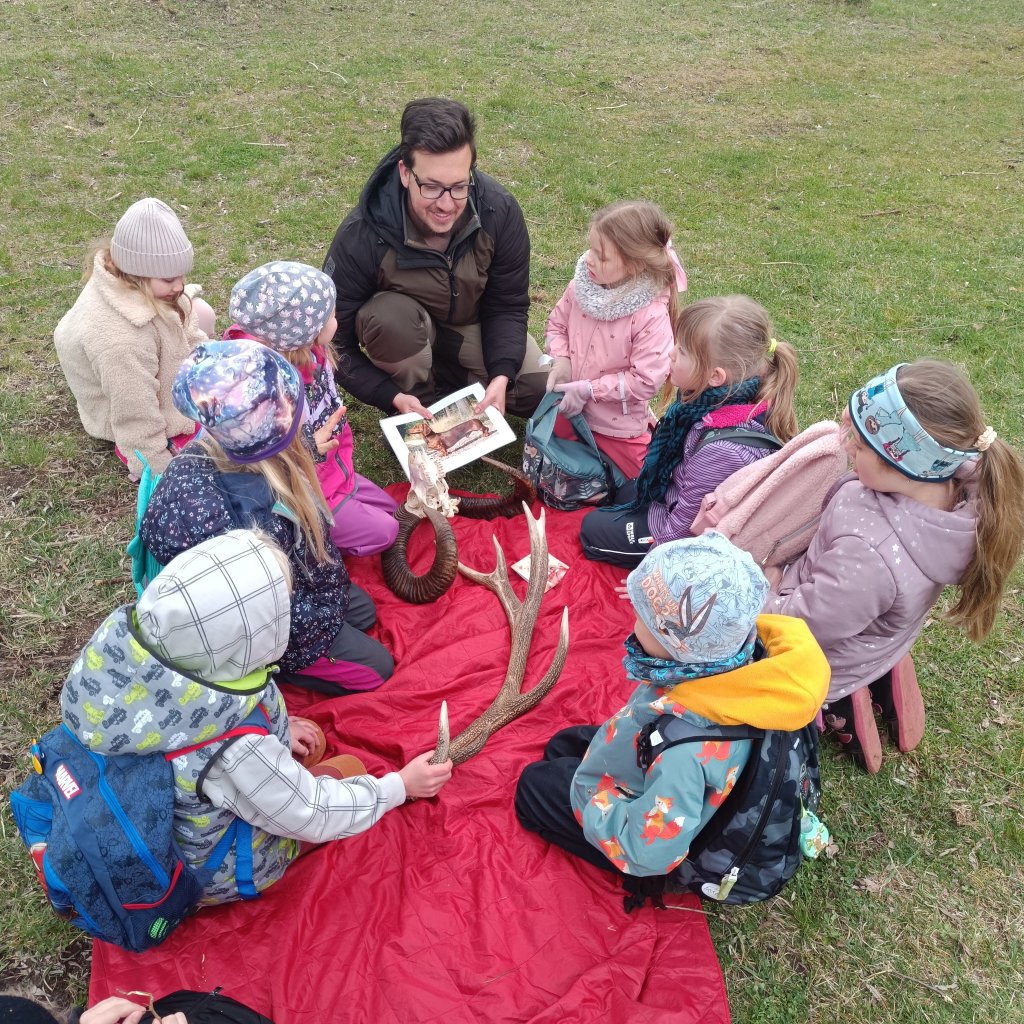 S revírníkem Lukášem Křídlem byly děti u telnického krmelce. Pro lesní zvířátka děti přinesly mrkev a jablka. Společně s panem revírníkem vše odnesli do krmelce, kam přidali i pořádnou dávku sena. Cestou ke krmelci vyprávěl pan revírník dětem o životě lesní zvěře a seznámil je také s tím, co práce revírníka obnáší. Děti se dozvěděly, jak se starat o les, aby byl krásný a všem se v něm líbilo.